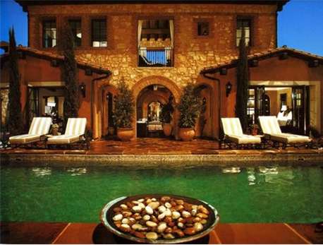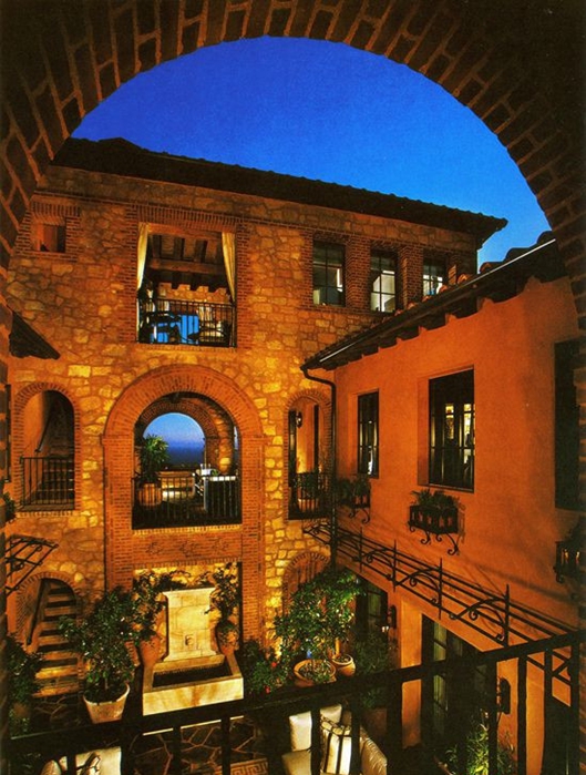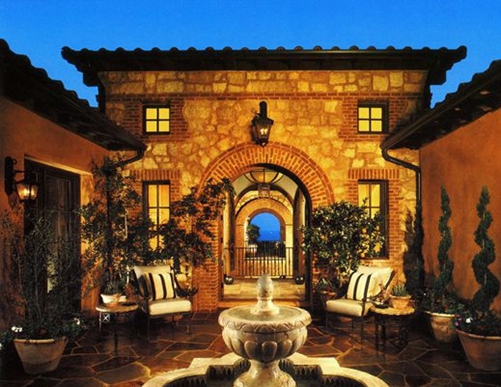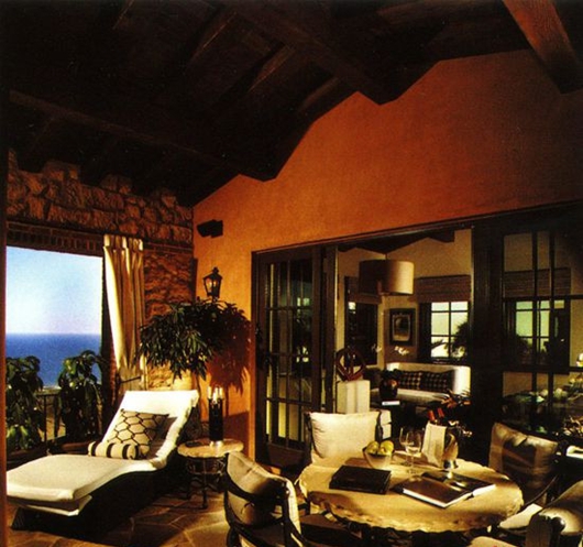 在玄關前方庭院的上方,這座別墅顯露出了令人驚奇的部分:一個極漂亮的三層第二庭院允許陽光和海岸微風滲入并穿透這所雄偉的房子的中心部分。隨著空間連 續性的展開,整幢房子呈現出了精細刻畫的石頭和灰泥混合物,在這視覺上把房子與場點的沿海雄偉風光連接在了一起。狹長的風景帶從后涼廊和露天涼臺的上部延伸到地平線,在這里,海景構成了整個房子的一種靜謐感。