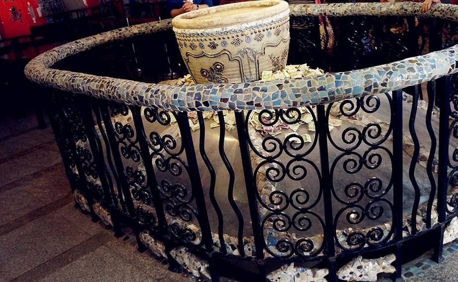 豪宅設(shè)計(jì)分享瓷房子小平臺的屋頂,又各式各樣的盤子裝飾,其中最中間的彩粉盤子產(chǎn)自清朝乾隆年間,是張連志花了300萬拍來的。