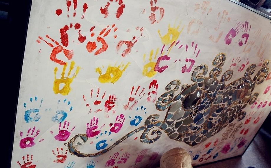 豪宅設(shè)計(jì)分享一幅由瓷片制成的名為慈母心的畫。