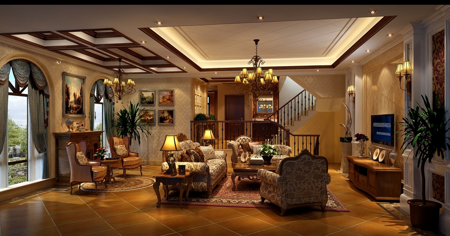 躍層、別墅等戶型的客廳挑空過高,設(shè)計(jì)師應(yīng)該解決視覺的舒適感受,具體做法是,采用體積大、樣式隆重的燈具彌補(bǔ)高處空曠的感覺。分隔線:在合適的位置圈出石膏線,或者用窗簾將客廳垂直分成兩層,令空間敞闊豪華而不空曠。