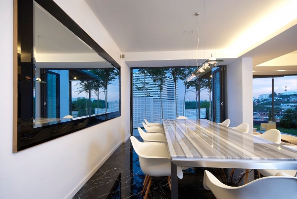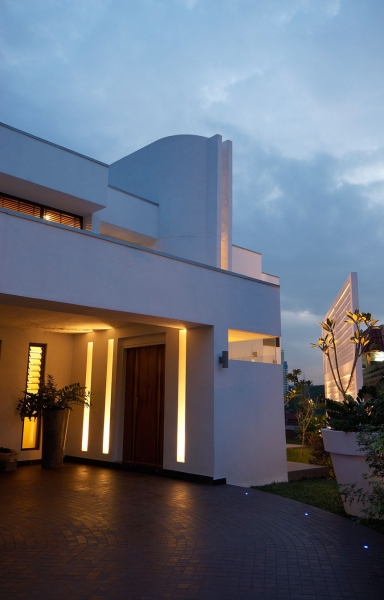 這個4500平方英尺的房子建在8000平方英尺的一個緩坡上降落。房子的方向是特殊的,因為它并不能面對服務道路,但有一個45度的傾斜。它能達到兩個目標:第一,寬度和建筑物的大小是優(yōu)化;其次,它確保隱私的人。建筑結(jié)構(gòu)保存雖然增加了一些微小的擴展。這房子被漆成白色,這樣一個能欣賞強壯的架構(gòu)形式。黑暗的鋁框玻璃窗被安裝在眾議院。以補充現(xiàn)代形式、景觀建筑都保持清潔。蓄意使用戲劇性的Serralunga盆與Zamia紙板棕櫚成為焦點的花園。