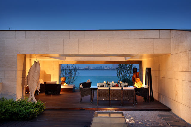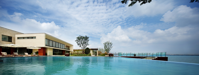 在項(xiàng)目整體規(guī)劃中,中央景觀帶引入蘇式街巷和小廣場格局,形成自由收放的公共休閑活動(dòng)空間,主要建筑傍依兩側(cè),或直接臨湖,或臨寬闊河道,在景觀方面基本達(dá)到戶戶臨水的生態(tài)居住格局。為達(dá)到對(duì)資源的充分利用,建筑高度從東往西逐漸抬高,以滿足每棟別墅對(duì)湖景的觀賞需要。在社區(qū)南端臨湖5000m2景觀綠地內(nèi),將配置蘇州首家小型直升飛機(jī)停機(jī)坪及私家游艇碼頭,為整個(gè)社區(qū)的定位提升,創(chuàng)造高附加值。就單棟建筑而言,規(guī)劃中強(qiáng)調(diào)戶戶具有超闊私家院落、私家泳池、私家親水駁岸,實(shí)現(xiàn)最大化的居住舒適性,強(qiáng)調(diào)私密性和私屬領(lǐng)地價(jià)值。